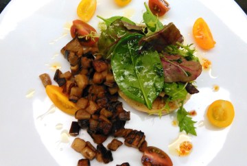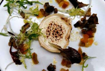 Welcome cocktail (with a non alcoholic version) Canapes Parmesan shortbreads with beetroot pesto Crab and avocado cups Starter Orange, myrtle and oregano grilled goat cheese with roasted aubergine Main course Marinated butcher’s steak ssäm Dessert Baked egg custard with honey pears and hazelnut chocolate ice cream Cheese platter