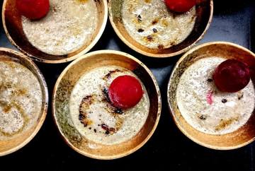 Welcome cocktail (with a non alcoholic version) Canapés Manchego cheese with Caramelized Red Onion and Fig Jam Ajo Blanco with Roasted Red Peppers A Selection of Sharing Plates Cold Potato and Leek Terrine Terrine a la Paysanne Caraway Seed and Vodka Marinated Cheese Herby Corn Cakes Hot Courgette and Za’atar Soup Cauliflower Shawarma with Tahini … Continue reading November 7th 2015 Private Supper