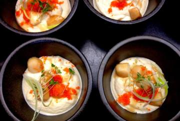 Welcome cocktail (with a non-alcoholic alternative) Canapes Ajo blanco with roasted red pepper Caramelised red onion with manchego cheese and fig A selection of tasting dishes Zamburiñas (baby scallops) with cauliflower puree and tobiko Cured salmon with citrus mooli Salmorejo Japanese marinated steak ‘Ssam’ Dessert Black sesame creme brulee and raspberry yuzu ice cream Coffee, … Continue reading August 9th 2014 Supper