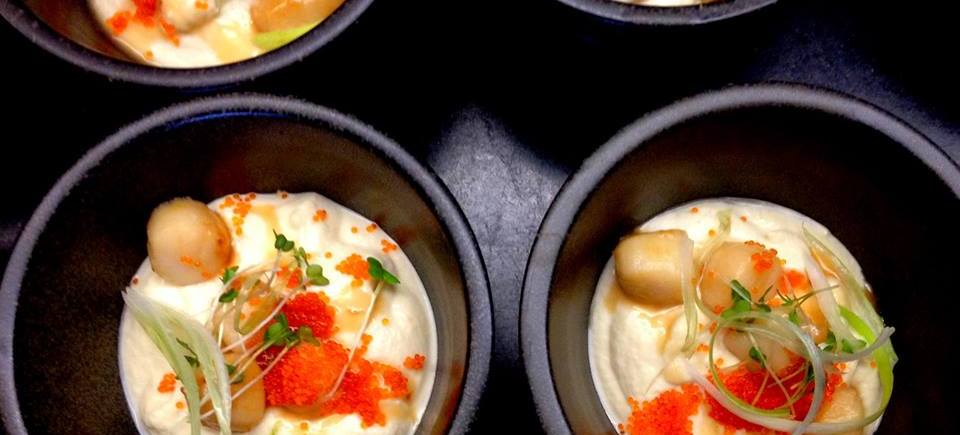Zamburiñas (baby scallops) with cauliflower puree and tobiko
